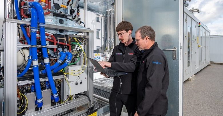 في صميم هذا الجهاز، الذي تم تطويره بالتعاون مع شركة FEST الألمانية ومقرها جوسلار، تعمل وحدتان من وحدات التحليل الكهربائي بتقنية “هايبريون” والمصنّعتان في بامبرغ. وتتمتع كل وحدة بقدرة 1.25 ميغاواط وتنتج حوالي 23 كيلوجرامًا من الهيدروجين في الساعة من الماء والكهرباء، أي ما يزيد على طن واحد يوميًا عند التشغيل الكامل. وتكفي هذه الكمية لتزويد شاحنة كهربائية تزن 40 طنًا ومزودة بوحدة خلايا وقود من بوش بالطاقة لمسافة تصل إلى 14 ألف كيلومتر.