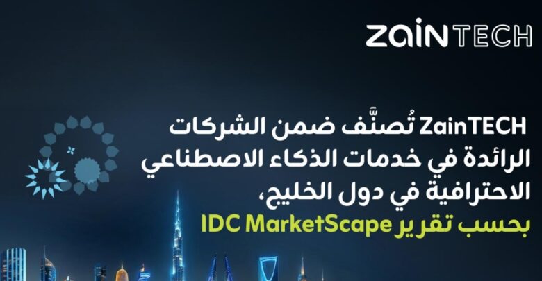 دبي، الامارات العربية المتحدة – 22 إبريل 2026: أعلنت ZainTECHمزود الحلول الرقمية المتكاملة التابع لمجموعة زين، عن تصنيفها ضمن فئة القادة في تقرير IDC MarketScape لتقييم مزودي خدمات الذكاء الاصطناعي في دول الخليج للعام 2025، وهي إحدى أبرز المؤسسات العالمية في بحوث السوق والخدمات الاستشارية في قطاع تكنولوجيا المعلومات والاتصالات.